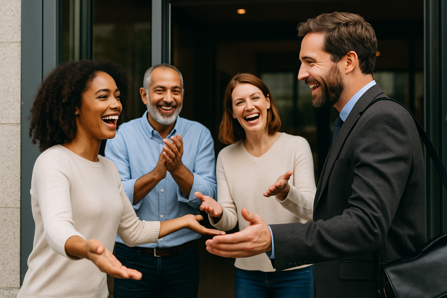 They gave us a warm welcome when we arrived. (Они радушно встретили нас, когда мы приехали.)